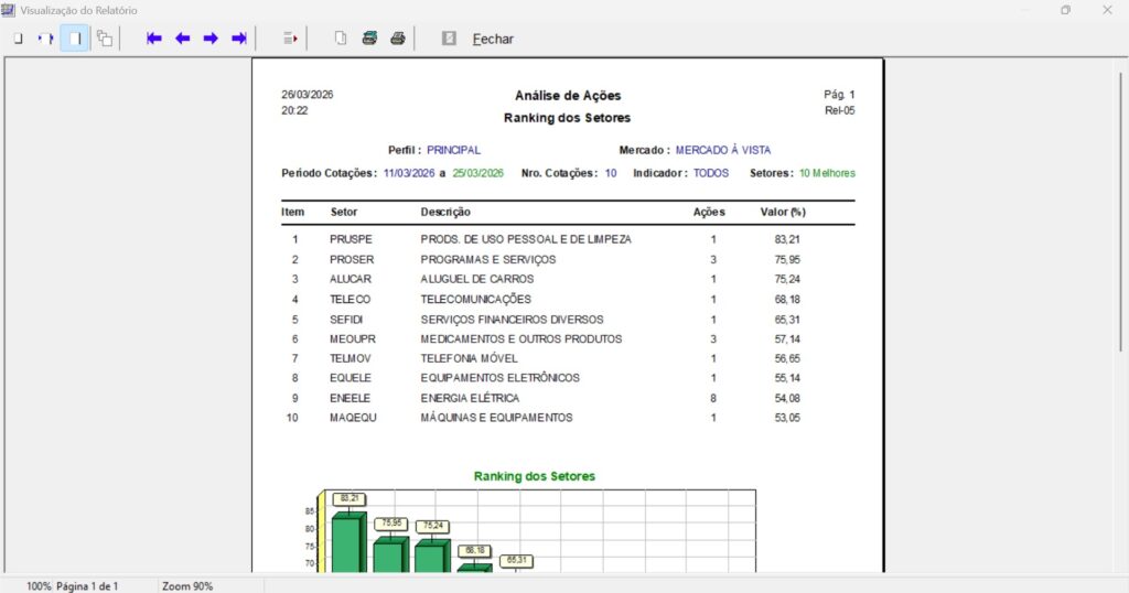 Descubra quais são os 10 melhores ou piores setores em um determinado período de cotações, utilizando um indicador específico para a análise ou uma combinação de todos eles.