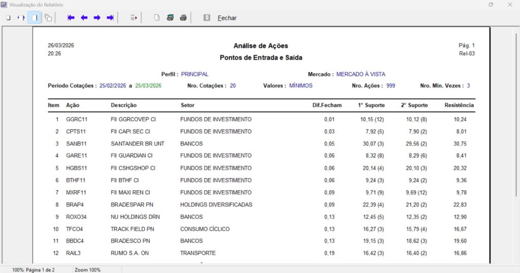 Veja os pontos de compra (entrada) e venda (saída), obtidos através da análise dos suportes e resistências mais próximos da última cotação de fechamento das ações.
